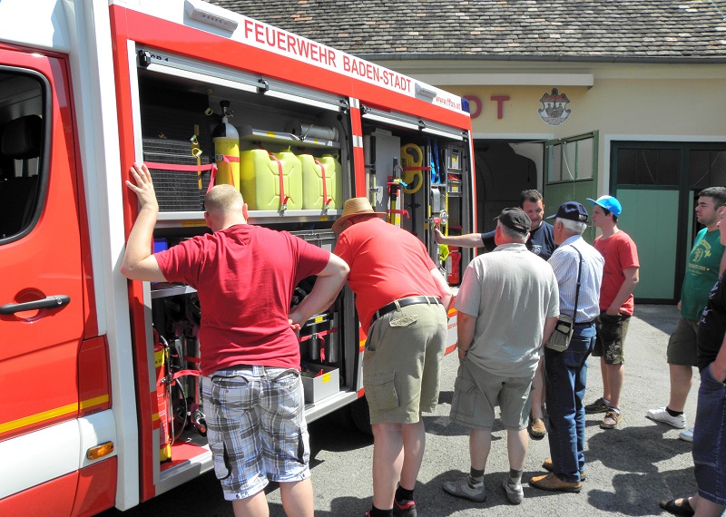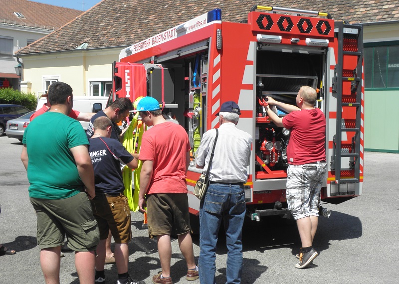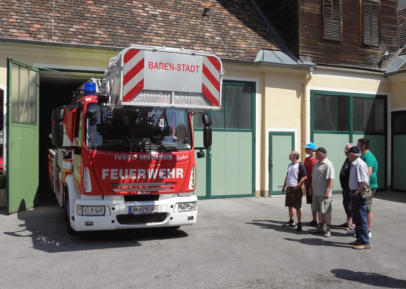 Am Samstag gleich nach dem Frühstück – alle waren da – ging es zur Feuerwehr Baden-Stadt, nachdem wir die Bezirksalarmzentrale Baden-Leesdorf aufgrund eines Umbaus noch nicht besichtigen konnten.