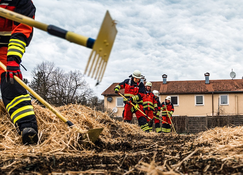 Nach einer kurzen theoretischen Auffrischung am Katastrophenschutzzentrum wurde das Erlernte auf einer nahe gelegenen, mit Stroh bedeckten Flurfläche, gleich in die Praxis umgesetzt.