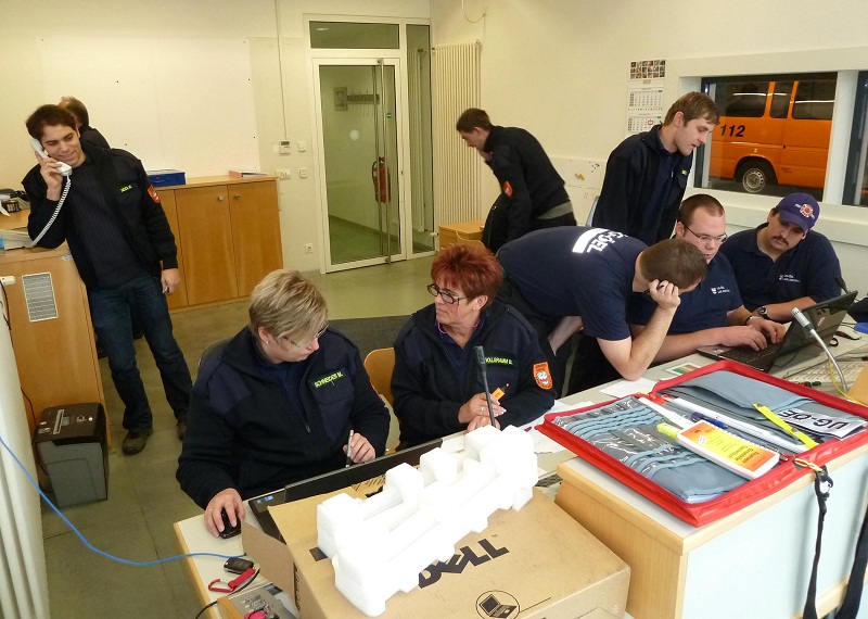 Nach der Ankunft in Landsberg standen der Bezug des Quartiers in der Welfenkaserne sowie der Aufbau einer Führungsstelle auf dem Programm. Anschließend wurden die Einsatzkräfte verköstigt und erhielten eine kurze Schulung zum Thema Hilfskontingente.