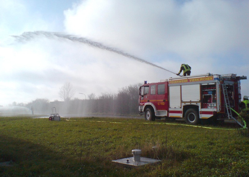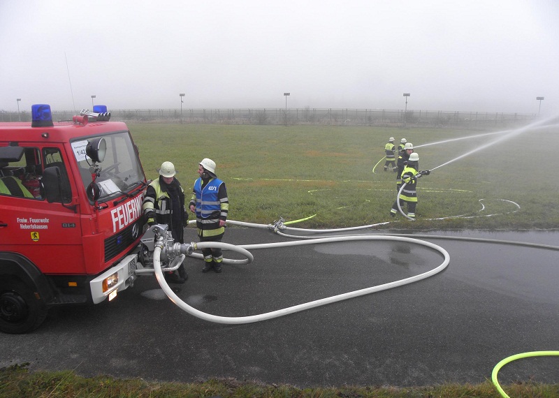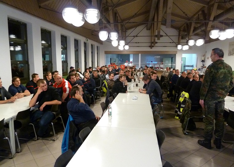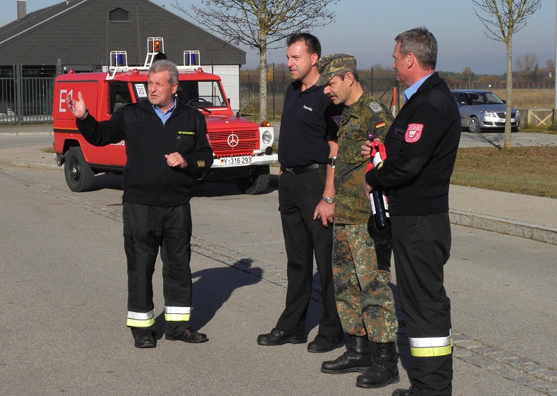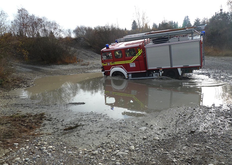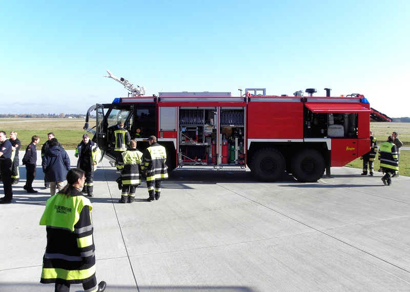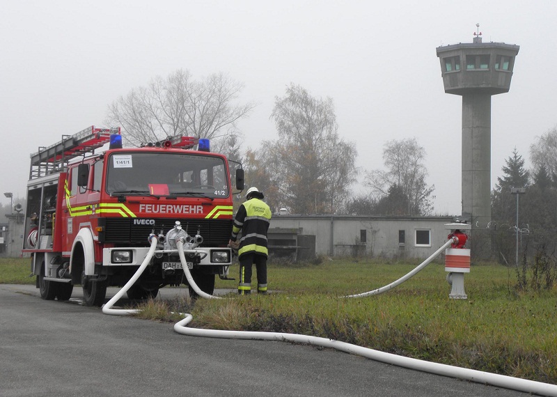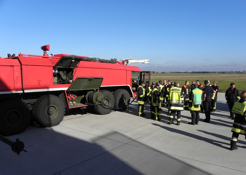 Um 6.00 Uhr bereits wurden die Teilnehmer am Samstag wieder geweckt, so dass pünktlich um 8.00 Uhr der Abmarsch zum Truppenübungsplatz Lagerlechfeld beginnen konnte. Hier wurden von den beteiligten Löschzügen abwechselnd die Freiflächen-Brandbekämpfung zum Schutz von Objekten sowie das Fahren in unwegsamem Gelände geübt. Schließlich bestand auch noch die Möglichkeit die Bundeswehrfeuerwehr kennenzulernen und sich dort in den Besonderheiten bei der Brandbekämpfung insbesondere militärischer Flugzeuge unterrichten zu lassen.