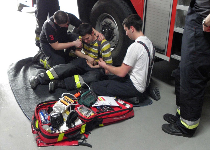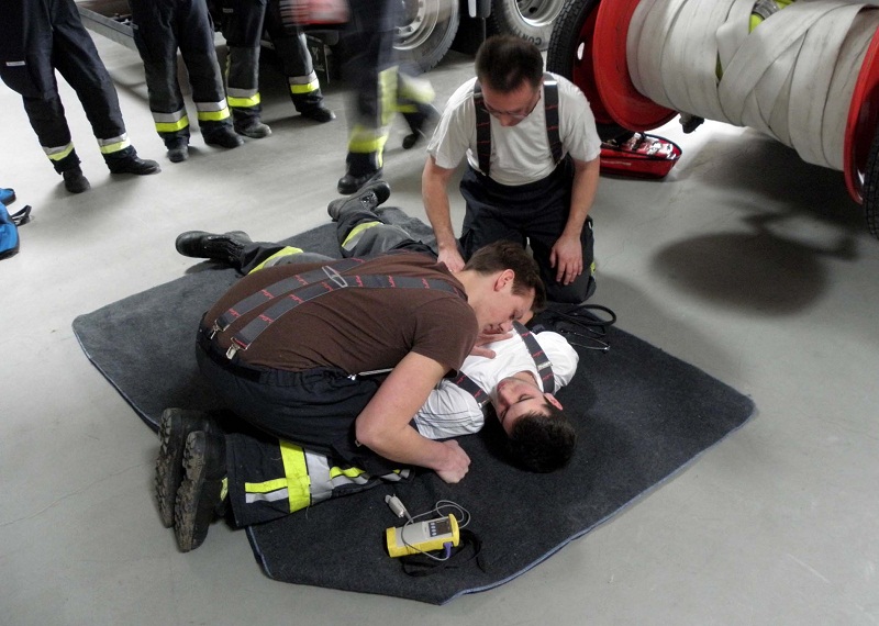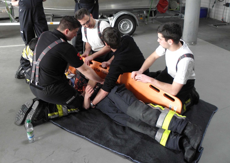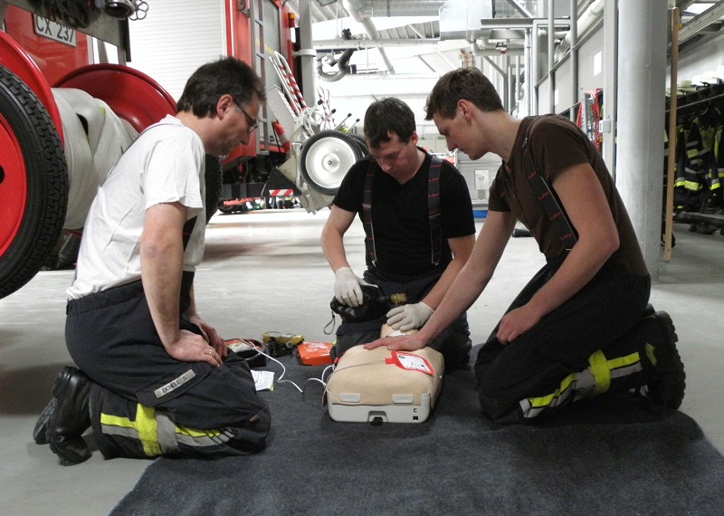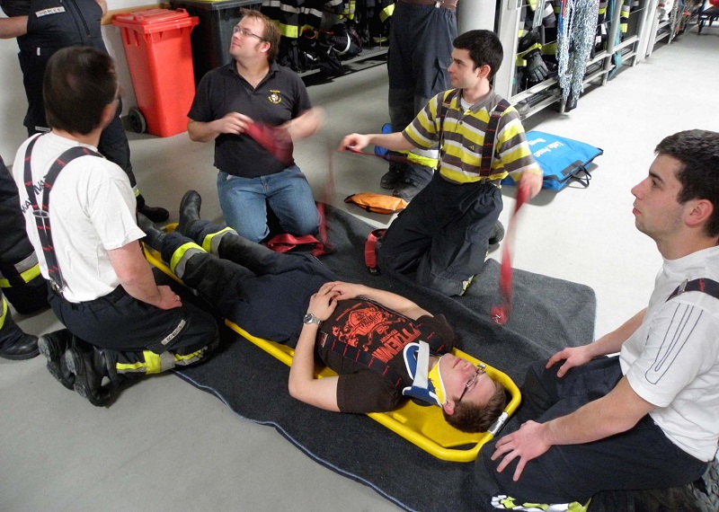 In nachgestellten Notfallsituationen konnten die Teilnehmer anschließend die erworbenen Kenntnisse gleich in die Praxis umsetzen und Unfallopfer fachgerecht versorgen. Die Szenarien umfassten dabei das gesamte Spektrum von der Rauchgasvergiftung über die fachgerechte Rettung aus einem verunfallten PKW bis hin zur Herz-Lungen-Wiederbelebung.