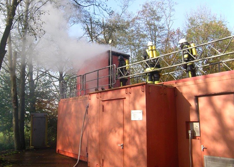 Zur Gewöhnung an die hohen Temperaturen in Brandräumen führten die Atemschutzträger zunächst eine Wärmegewöhnungsübung im Brandcontainer durch, anschließend mussten sie in zwei Übungsszenarien einen Zimmerbrand mit Personenrettung sowie einen Küchenbrand im Keller bewältigen. Des Weiteren wurden Übungen zur Orientierung wie das Absuchen und Erkennen von unbekannten Räumen durchgeführt.