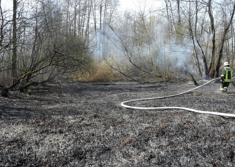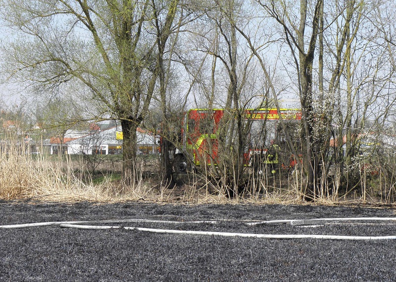 Den ersten größeren Flächenbrand in diesem Jahr hatten die Feuerwehren Dachau, Feldgeding und Günding am Donnerstagmittag zu bekämpfen. Anrufer informierten gegen 13.55 Uhr die Integrierte Leitstelle über eine starke Rauchentwicklung am Gündinger Wehr.Eine weithin sichtbare Rauchsäule wies den alarmierten Wehren den Weg zur Schadensstelle. Beim Eintreffen der ersten Einsatzkräfte standen ca. 2.000 qm Fläche in Flammen; durch das trockene Laub und Gras, sowie aufkommenden Wind, fand das Feuer reichlich an Nahrung.