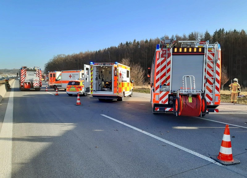Ein schwerer LKW-Unfall auf der A8 zwischen Odelzhausen und Sulzemoos hat am Donnerstagnachmittag (25.02.2021) für einen Großeinsatz der Rettungskräfte sowie eine stundenlange Vollsperrung der Autobahn gesorgt.