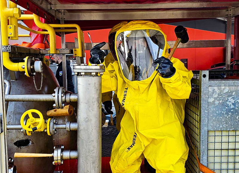 Ein besonderer Schwerpunkt lag im Anschluss auf den neu beschafften CSA. Die Teilnehmer erhielten umfassende Einblicke in Aufbau, Funktionsweise und Besonderheiten der neuen Anzüge. Dabei wurden unter anderem Themen wie richtige Handhabung, Wartung, Pflege erläutert sowie die taktische Einsatzmöglichkeiten praktisch beübt.