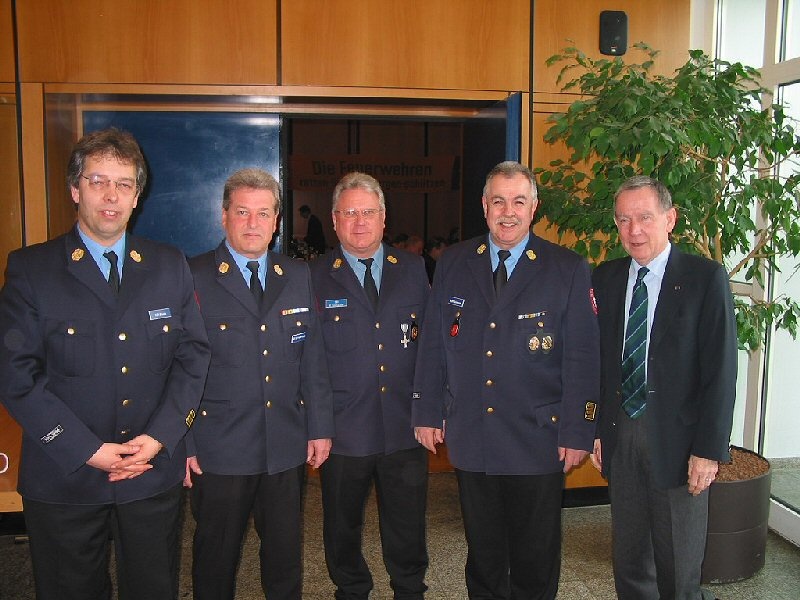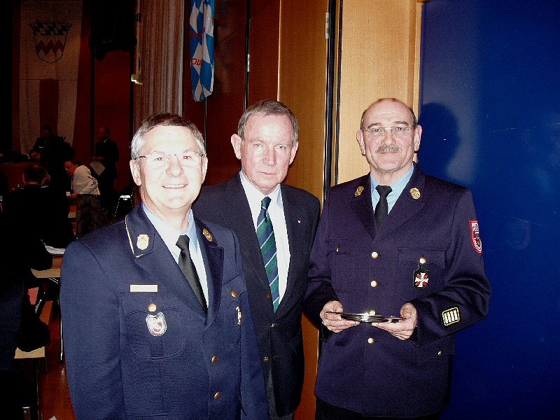 Nach den Grußworten von Landrat Christmann, OB Bürgel, Polizeipräsident Hillebrand und dem Vorsitzenden des Landesfeuerwehrverbandes Bayern, verabschiedete der Regierungspräsident zusammen mit dem Vorsitzenden des Bezirskfeuerwehrverbandes Oberbayern die ehemaligen Stadt- und Kreisbrandräte, sowie –inspektoren, darunter auch den ehemaligen Kreisbrandrat des Landkreises Dachau, Erwin Zehrer und überreichten ein Präsent.