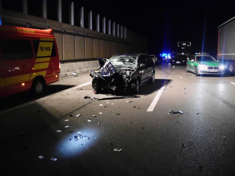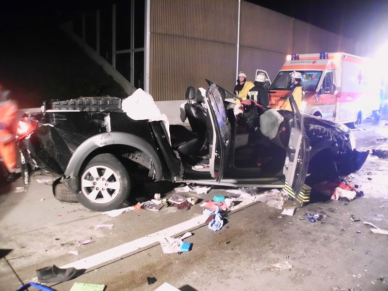 Ein schwerer Verkehrsunfall hat sich in der Nacht von Dienstag auf Mittwoch kurz vor Mitternacht auf der Autobahn A8 zwischen den Anschlussstellen Odelzhausen und Sulzemoos ereignet. Dabei wurden vier Personen schwer und eine weitere leicht verletzt.Aus noch ungeklärter Ursache hat sich ein in Richtung München fahrender Mitsubishi Pick-Up mehrmals überschlagen und kam anschließend wieder auf allen vier Rädern zum Stehen kam. Der Fahrer des Pick-Up wurde dabei in seinem Fahrzeug eingeklemmt und musste von der Feuerwehr mit hydraulischem Rettungsgerät befreit werden, er wurde mit schweren Verletzungen durch einen Rettungshubschrauber ins Krankenhaus zur weiteren Behandlung verbracht.