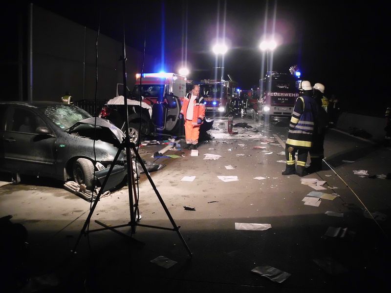 Durch den Überschlag des Geländewagens samt Beladung bot sich den Rettungskräften ein Trümmerfeld, das über 200 Meter auf der Autobahn verteilt war. An der Einsatzstelle waren neben Polizei und Rettungsdienst die Feuerwehren Odelzhausen, Sulzemoos und Wiedenzhausen sowie die Kreisbrandinspektion.