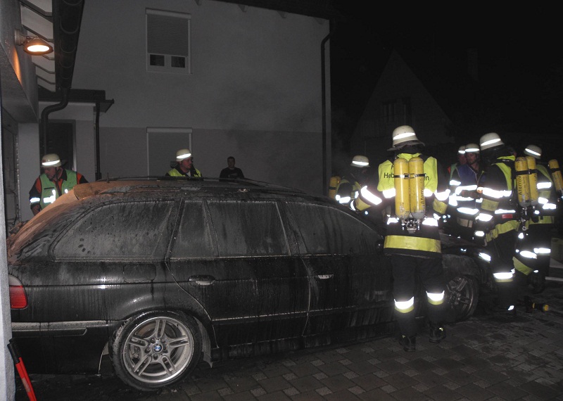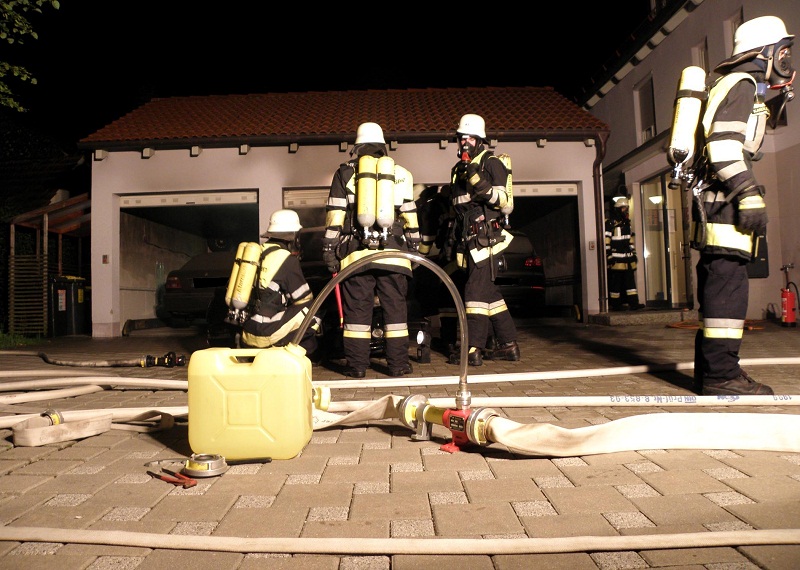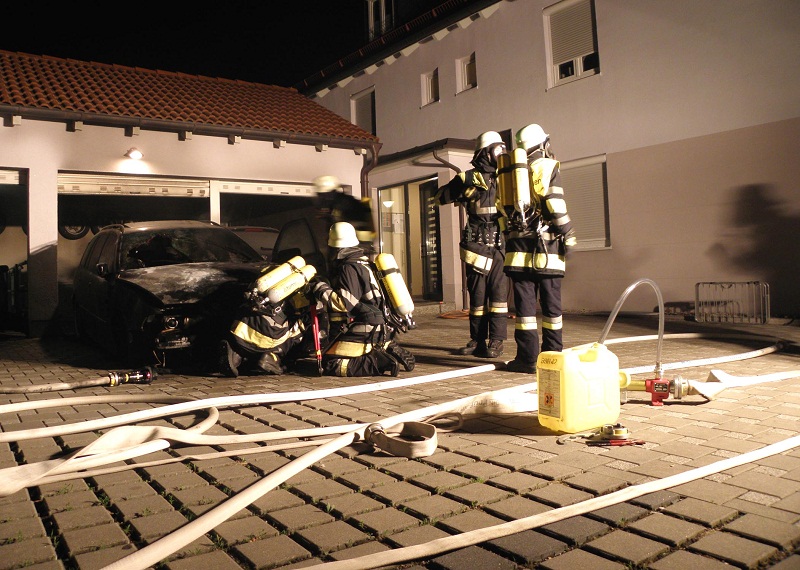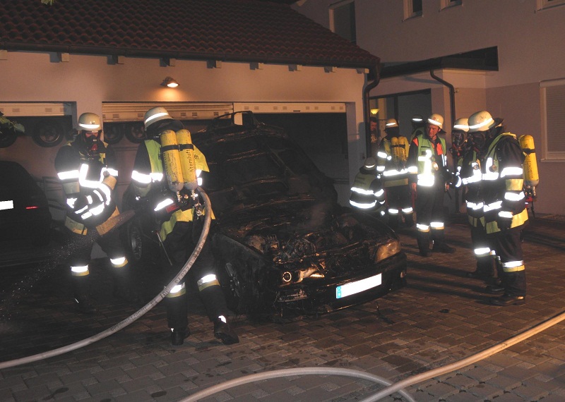 Nur dem schnellen Eingreifen der Hebertshausener Feuerwehr war es zu verdanken, dass die Flammen nicht auf weitere in der Garage abgestellte Fahrzeuge übergriffen.