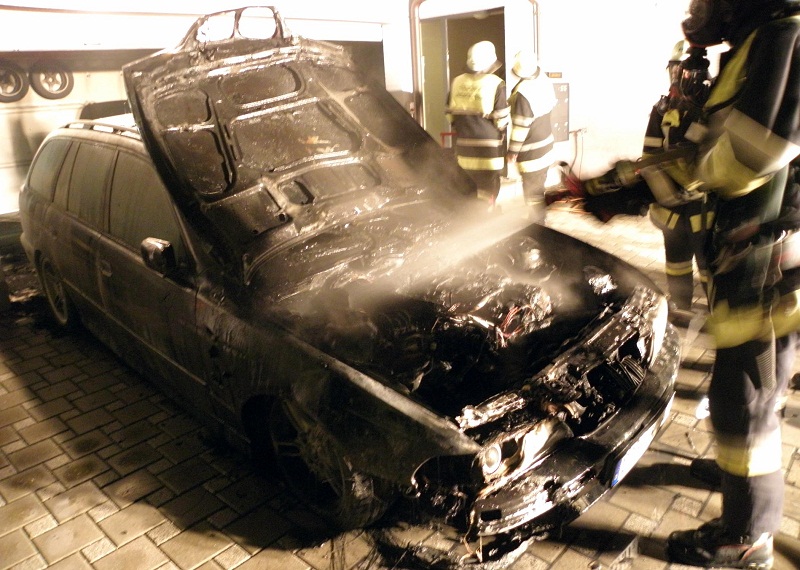 Vermutlich ein technischer Defekt im Motorraum eines Kombis dürfte für einen Brand in Frage kommen, der sich in den Abendstunden des Dienstags in einer Duplexgarage in Hebertshausen ereignete.Gegen 23.05 Uhr informierten Anrufer über Notruf die Integrierte Leitstelle, worauf neben Polizei und Rettungsdienst die Feuerwehren Dachau und Hebertshausen alarmiert wurden.