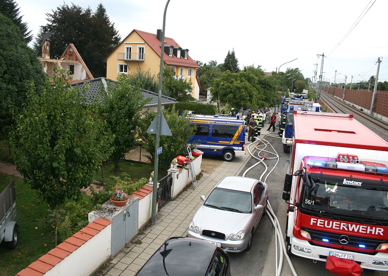 Dreimal knallte es laut und dann stieg starker Rauch in einem Wohngebiet in Röhrmoos auf. Der Grund war für die Nachbarn und die über 70 Einsatzkräfte von Feuerwehr, BRK und dem THW Dachau klar – es handelte sich um eine Übung mit dem imaginären Szenario einer Gasexplosion bei einer Abrissparty wobei mehrere Personen verletzt wurden.