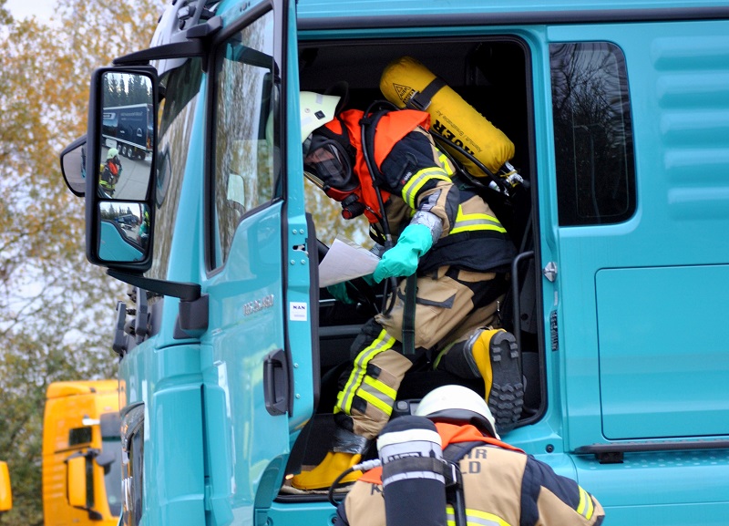 Angenommenes Szenario war ein Gefahrgutunfall auf einem Rastplatz. Ein dort abgestellter LKW hatte mehrere Behälter mit unterschiedlichen gefährlichen Stoffen geladen. Einer der IBC-Container, welcher mit dem Gefahrstoff Propionitril gefüllt war, hatte Leck geschlagen – mehrere Personen befanden sich zudem im direkten Austrittsumfeld.