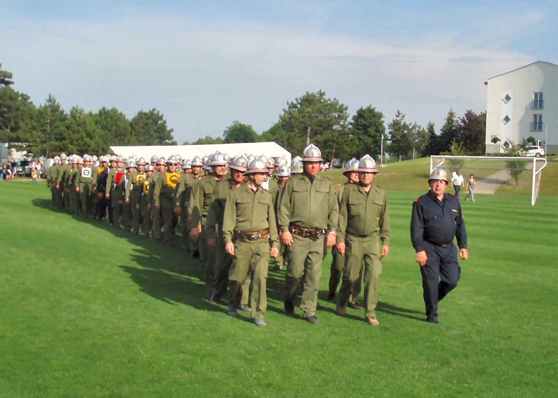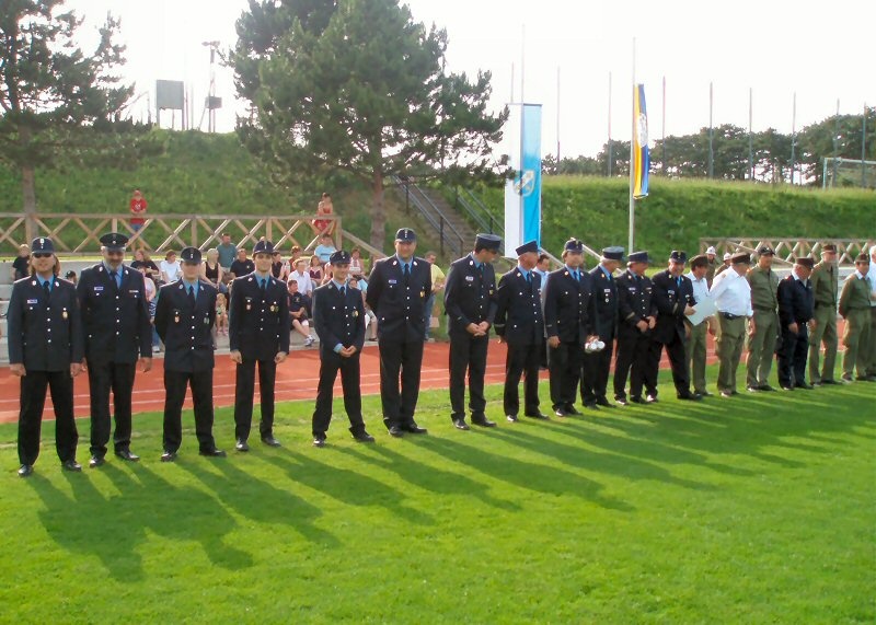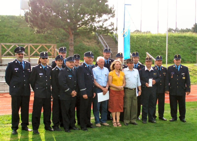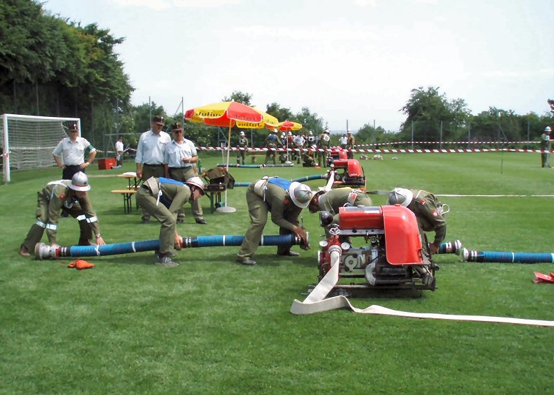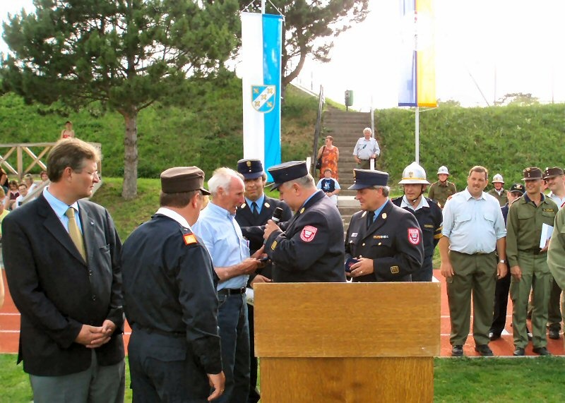 Zu einem Gegenbesuch hielten sich von Freitag bis Sonntag (16.06. bis 18.06.06) Angehörige der Kreisbrandinspektion und der Dachauer Feuerwehr bei der Freiwilligen Feuerwehr Lindabrunn in Niederösterreich auf, zu der seit über 25 Jahren kameradschaftliche Beziehungen bestehen. Die Feuerwehr Lindabrunn veranstaltete zu diesem Zeitpunkt ihr traditionelles Sommernachtsfest, verbunden mit Feuerwehrleistungswettbewerben (bei uns Leistungsprüfungen) des Abschnittes Pottenstein, zu dem die FF Lindabrunn gehört. Am Freitagmittag wurde die Dachauer Delegation vom Kommandant- Stellvertreter Christian Kopp begrüßt; nach dem Bezug der Quartiere in der Sportschule Lindabrunn traf man sich abends mit den österreichischen Feuerwehrkameraden beim „Heurigen“ und ließ sich die heimischen Spezialitäten und den Wein munden. Am Freitagmittag wurde die Dachauer Delegation vom Kommandant- Stellvertreter Christian Kopp begrüßt; nach dem Bezug der Quartiere in der Sportschule Lindabrunn traf man sich abends mit den österreichischen Feuerwehrkameraden beim „Heurigen“ und ließ sich die heimischen Spezialitäten und den Wein munden. Am Samstag war dann zunächst Kultur angesagt im Rahmen einer Ortsbesichtigung; u.a. besichtigten wir auch die Linde am Brunnen, wo der Ortsname herführt. Der Nachmittag stand dann voll im Rahmen der Wettbewerbe, an denen sich über 70 Feuerwehrgruppen beteiligten. Bei der anschließenden Siegerehrung konnten auch von unserer Seite zwei Ehrungen durchgeführt werden. Oskar Kammla und Franz Schneider, beide Urheber und Förderer dieser Kameradschaft wurden stellvertretend für alle Lindabrunner Kameraden mit der Feuerwehr-Ehrenmedaille des Landesfeuerwehrverbandes Bayern ausgezeichnet. Für die Vizebürgermeisterin der Marktgemeinde Enzesfeld-Lindabrunn, Jutta Schwarz, sowie für den Bezirksfeuerwehrkommandanten des Bezirkes Baden bei Wien, Alfred Ofner, gabs jeweils einen Bierkrug. Das Sommernachtsfest verbrachten sowohl die bayerischen, als auch die österreichischen Kameraden in froher und heiterer Runde, die für manch einen erst am Sonntag früh endete. Am Sonntag hieß es dann wieder Abschied nehmen von Lindabrunn – das nächste Treffen wurde bereits schon vereinbart – das Dachauer Volksfest.