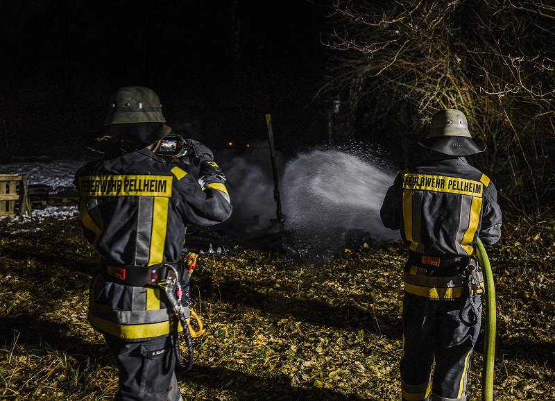 Nach Absprache mit der Polizei löschte die Feuerwehr Pellheim das Adventsfeuer ab und kontrollierte es mit der Wärmebildkamera auf versteckte Glutnester.