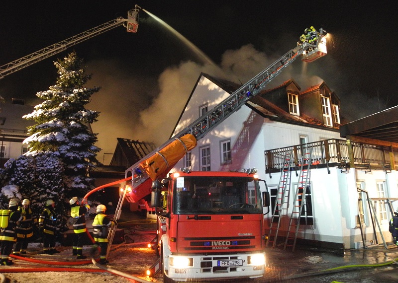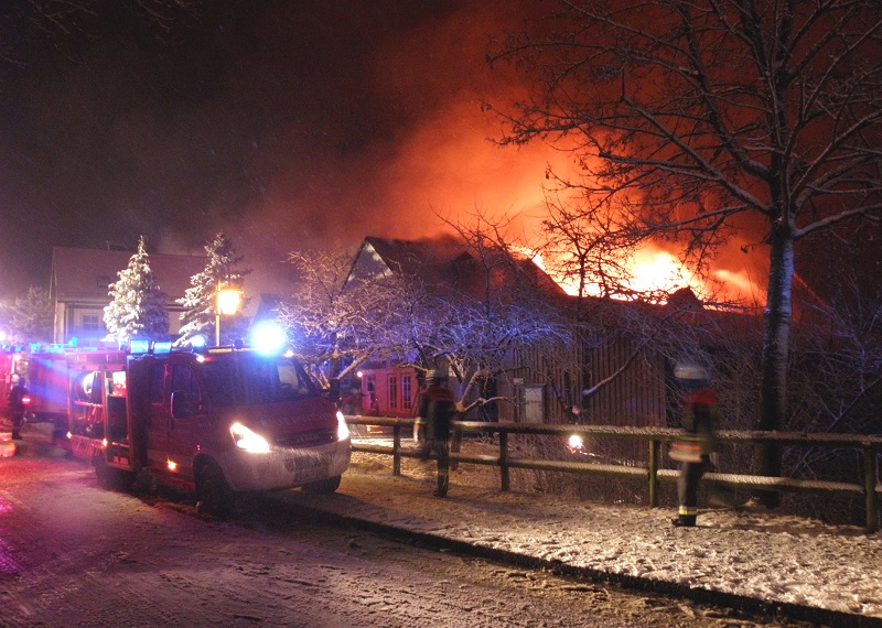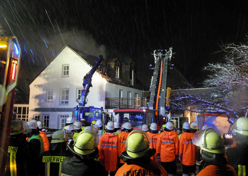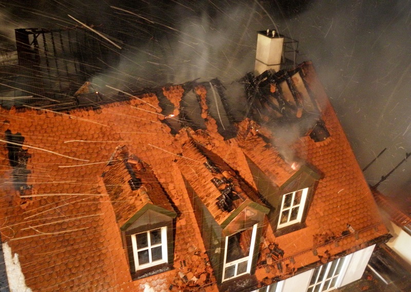 Danach wurde der Brand weitest möglich eingedämmt, um an die letzten Brandherde im Dachstuhl zu gelangen musste jedoch das Technische Hilfswerk gegen 3.00 Uhr mit Räumgerät hinzugezogen werden.