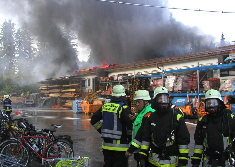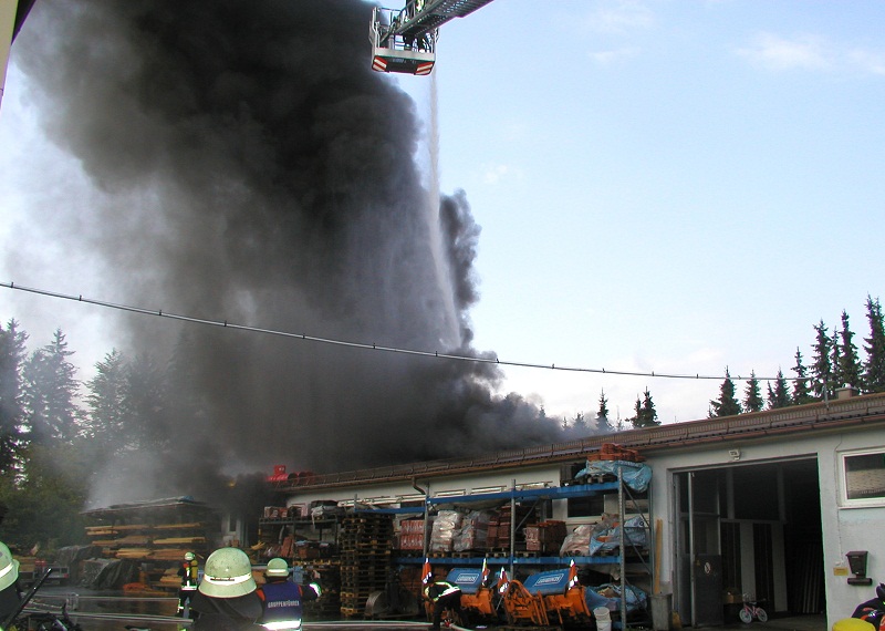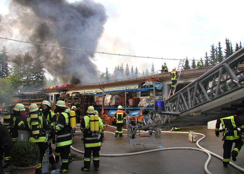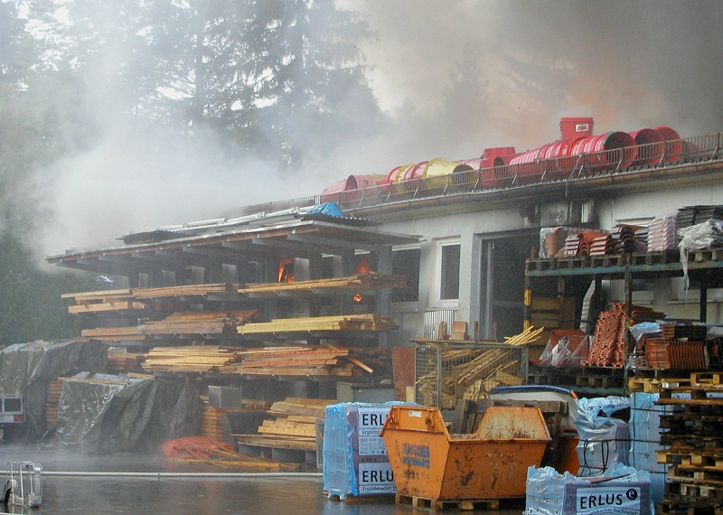 Zu einem Dachstuhlbrand wurden am Freitagmorgen um kurz nach 7.30 Uhr die Feuerwehren Karlsfeld und Dachau alarmiert. Als die ersten Kräfte an der Einsatzstelle in der Karlsfelder Münchner Straße eintrafen, war bereits eine starke Rauchentwicklung aus der Lagerhalle eines Dachdeckerbetriebes erkennbar.Umgehend wurden weitere Einsatzkräfte aus den umliegenden Feuerwehren Eschenried, Hebertshausen und Prittlbach alarmiert, ebenso wie eine Mannschaft der Feuerwehr Geiselbullach (Lkr. Fürstenfeldbruck), die gerade auf der Rückfahrt von einem Einsatz war.