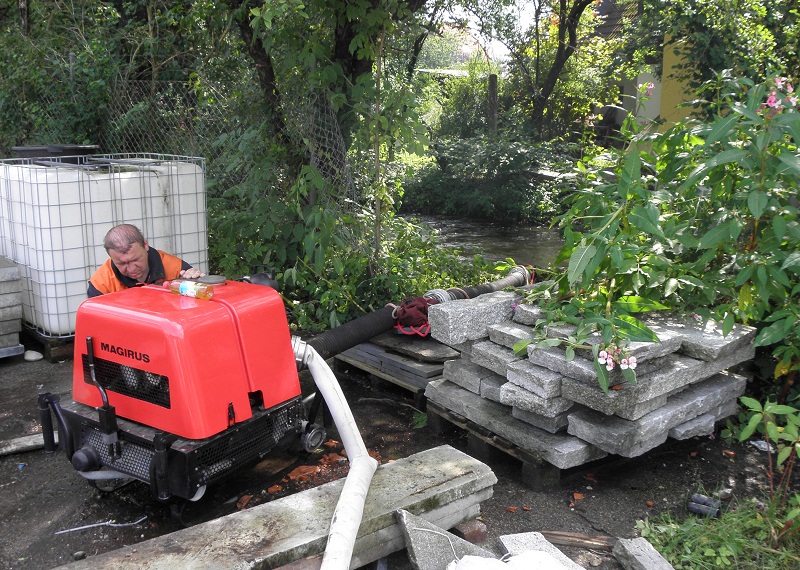 Für die Ablöscharbeiten wurden zwei Schaumrohre von beiden Seiten des Gebäudes vorgenommen. Die Wasserversorgung wurde durch zwei Förderleitungen aus der nahe gelegenen Würm sichergestellt.