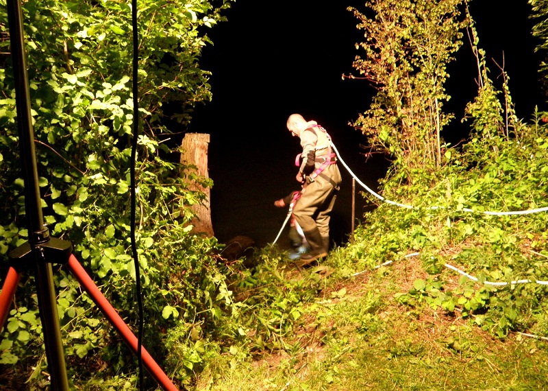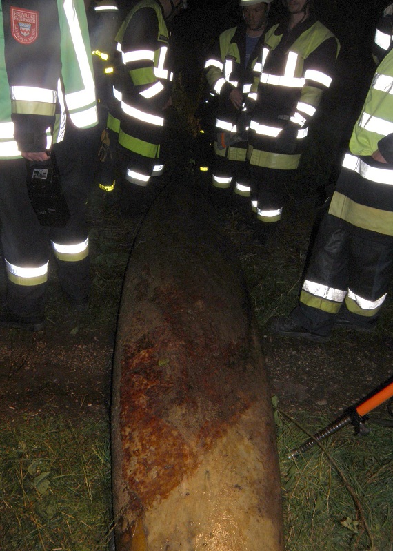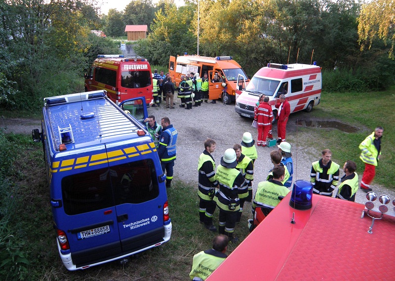 Ein Großaufgebot von Feuerwehr, Polizei, Rettungsdienst, Wasserwacht und Technischem Hilfswerk wurde am Sonntagabend (22.07.2012) kurz nach 19 Uhr zu einem Bombenfund nach Hebertshausen alarmiert. Passanten haben an der Amper nahe der Staustufe einen metallischen Gegenstand im Wasser entdeckt, der einer Bombe ähnlich sah.Bis zum Eintreffen eines Kampfmittelräumdienstes wurde der Fundort von den Feuerwehren Hebertshausen und Dachau weiträumig abgesperrt. In Anwesenheit des Kampfmittelentschärfers wurde der metallische Gegenstand schließlich gemeinsam von Technischem Hilfswerk und Feuerwehr zur näheren Bestimmung aus dem Wasser geborgen. Dabei stellte sich die vermeintliche Bombe schließlich als altes Kajak heraus, das nicht ordnungsgemäß entsorgt wurde.