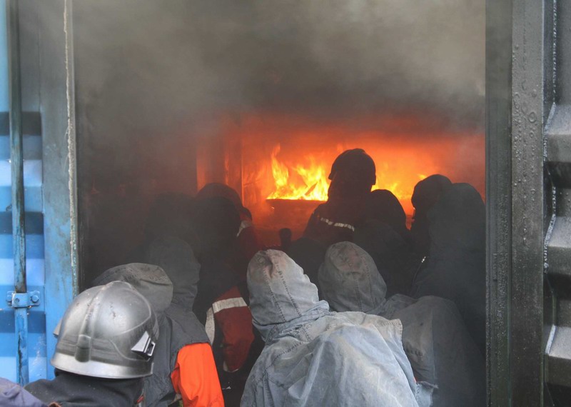 Der Samstag begann mit einer theoretischen Einführung zum Verhalten und den Risiken bei der Brandbekämpfung. Anschließend wurde in zwei Brandcontainern die praktische Umsetzung geübt.