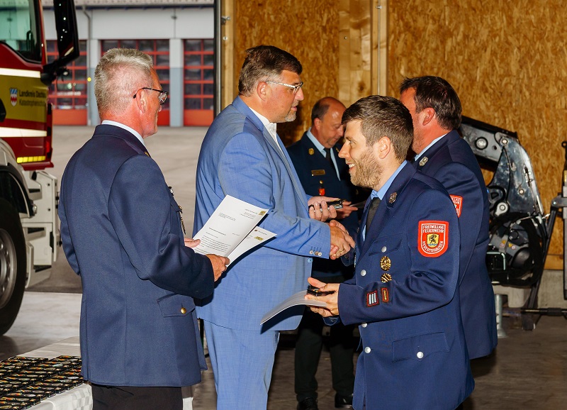 Am 27. Juni 2023 wurden im Katastrophenschutzzentrum Hebertshausen Ehrenamtliche aus dem Landkreis Dachau für ihren Einsatz bei der Flutkatastrophe im Ahrtal geehrt.