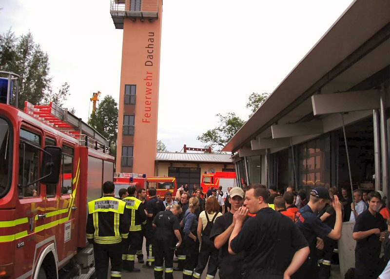 Der Landkreis Freising nahm dankbar das Angebot an, so dass 135 Einsatzkräfte der Feuerwehren und des BRK Dachau mit insgesamt 19 Einsatzfahrzeugen die Fahrt nach Freising antraten und dort bis Mitternacht mit dem Füllen von Sandsäcken, die dort dringenst benötigt wurden, beschäftigt waren.