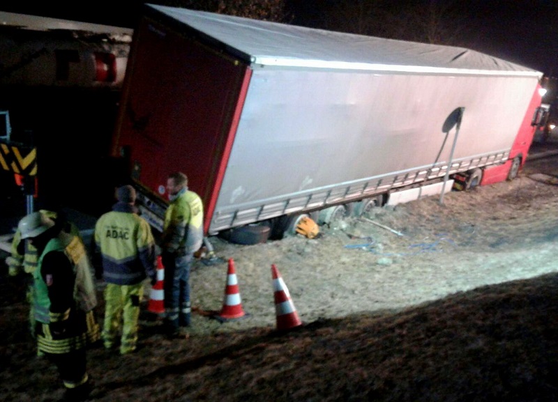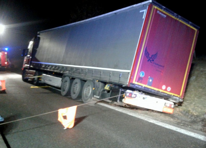 Aus dem Schlaf gerissen wurden die Einsatzkräfte zum Wochenendstart. Samstagfrüh (11.02.2017) gegen 0.30 Uhr wurden sie zum Parkplatz Fuchsberg an der A8 alarmiert, da ein vollbeladener 40-Tonnen-Lastzug sich im Bankett festgefahren hatte und drohte umzustürzen.