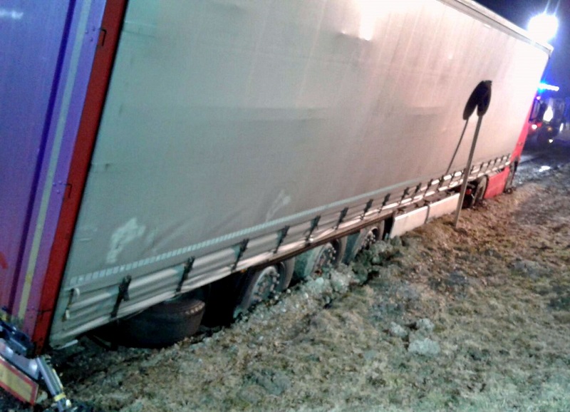 Im Bankett festgefahren – 40-Tonner droht umzustürzen