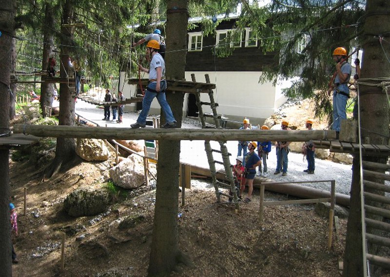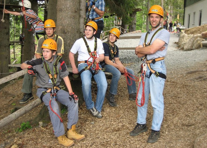 Nach dieser kurzen Unterweisung ging es los. Es gab verschiedene Parcours in unterschiedlichen Schwierigkeitsstufen. 3 Stunden lang tobten sich die Jugendlichen im Hochseilgarten ausgiebeig aus, danach gab es zur Stärkung eine Brotzeit.