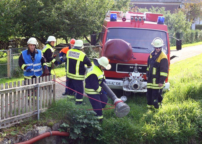 Dazu wurde neben der Wasserentnahme aus einem Oberflurhydranten parallel eine Löschwasserversorgung aus der Ilm von den Jugendlichen aufgebaut.