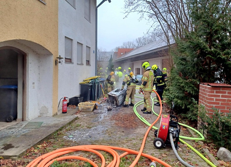 Aus noch ungeklärter Ursache geriet die Waschmaschine im Keller eines Mehrfamilienhauses in Brand. Ein Trupp unter schwerem Atemschutz drang umgehend zur Brandbekämpfung in das Gebäude vor. Bereits nach kurzer Zeit konnte das Haushaltsgerät abgelöscht und „Feuer aus“ gemeldet werden, anschließend wurde die Waschmaschine ins Freie gebracht.