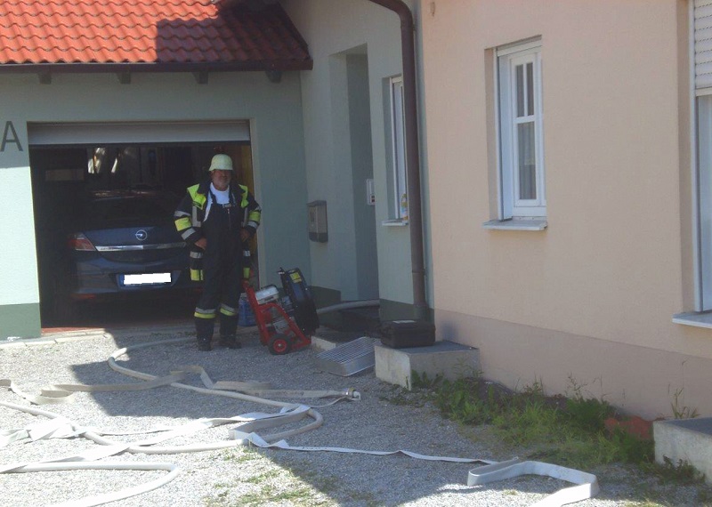 Ein Trupp unter schwerem Atemschutz drang in die Doppelhaushälfte vor und machte als Brandursache die Elektroinstallation im Keller ausfindig, danach konnte der Brand schnell gelöscht werden.