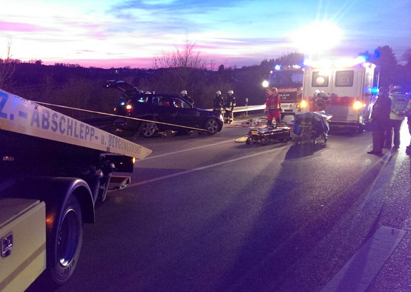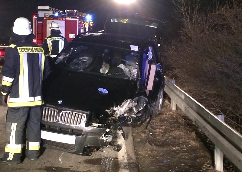 Ein schwerer Vekehrsunfall hat am Sonntagabend (08.03.2015) die Rettungskräfte gefordert. Ereignet hat sich der Zusammenstoß gegen 17.50 Uhr auf der Brücke über die S-Bahnstrecke bei Webling. Ein 19-jähriger Mercedes-Fahrer war in Richtung Dachau unterwegs, als er aus noch unbekannter Ursache auf die Gegenfahrbahn geriet und beinahe frontal mit einem 62-jährigen BMW-Fahrer aus Dachau zusammenstieß – der BMW X 3 schleuderte dabei gegen die Leitplanke.
