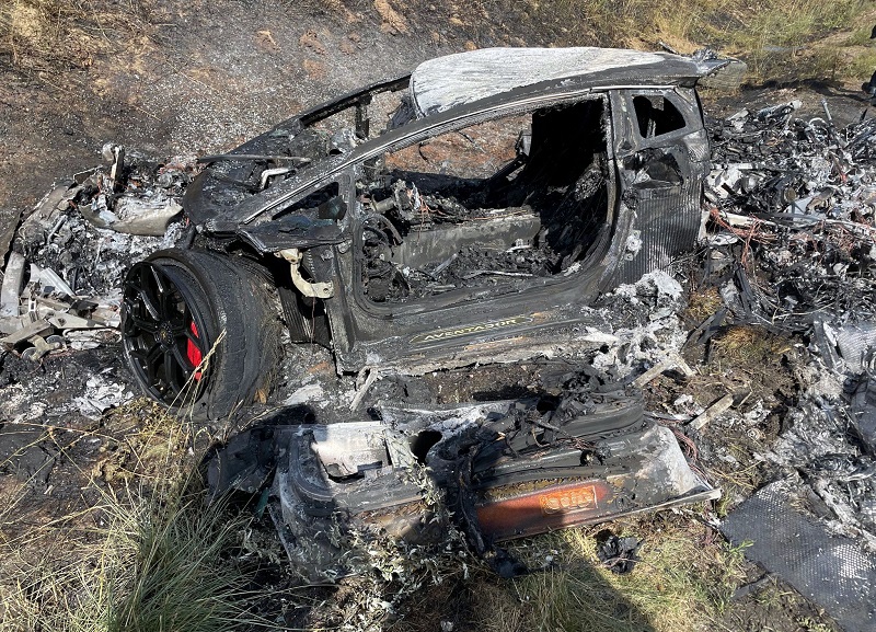 Lamborghini brennt nach Unfall auf der A 8 aus