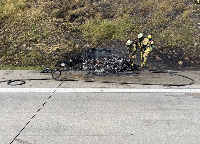 Die Feuerwehr löschte das in Brand geratene Fahrzeug unter schwerem Atemschutz hab. Da sich das Feuer am Ranken über eine Länge von 500 Meter ausgebreitet hatte, wurden weitere Kräfte zur Brandbekämpfung des in Brand geratenen Grünstreifens nachalarmiert.