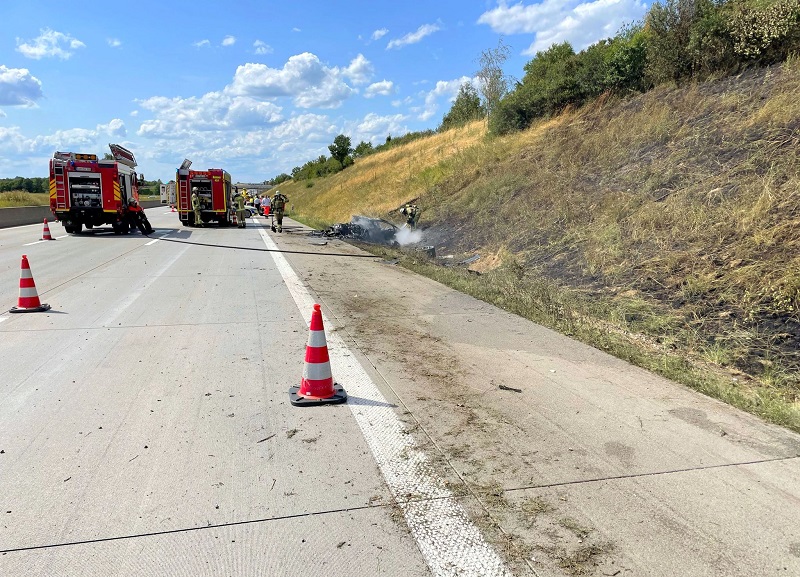 Aus noch unbekannter Ursache hat der Lenker eines Lamborghini zwischen den Anschlussstellen Sulzemoos und Odelzhausen die Kontrolle über seinen Boliden verloren. Der Sportwagen ist infolge nach rechts von der Fahrbahn abgekommen und mit dem angrenzenden Erdwall kollidiert, dabei fing der Lamborghini Feuer.