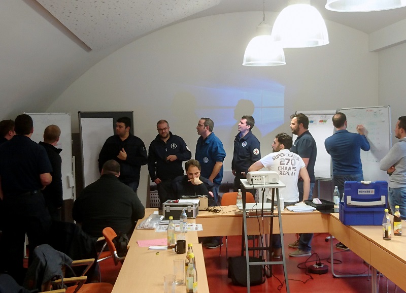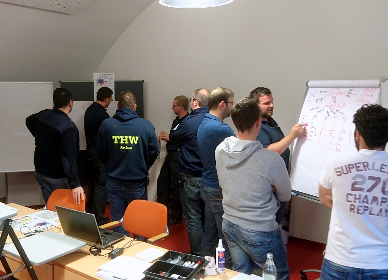 Nach einer kurzen Vorstellung der verschiedenen Rettungsorganisationen über die Struktur und Arbeitsweise bei Großschadenslagen hielt auch die ILS einen Gastvortrag über die eigene Tätigkeit bei Großschadenslagen. Danach wurden die insgesamt 10 Teilnehmer der Hilfsorganisationen gruppenweise eingeteilt, um die Kommunikationsstrukturen von Großschadenslagen anhand von mehreren Einsatzbeispielen zu planen. Die Ergebnisse wurden anschließend in der gesamten Runde diskutiert.