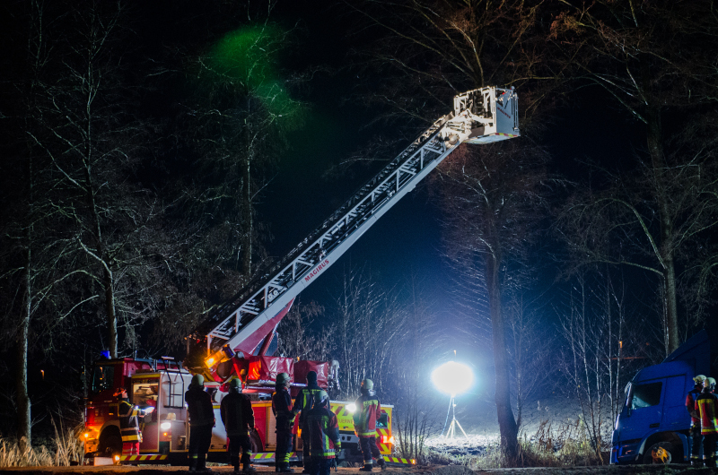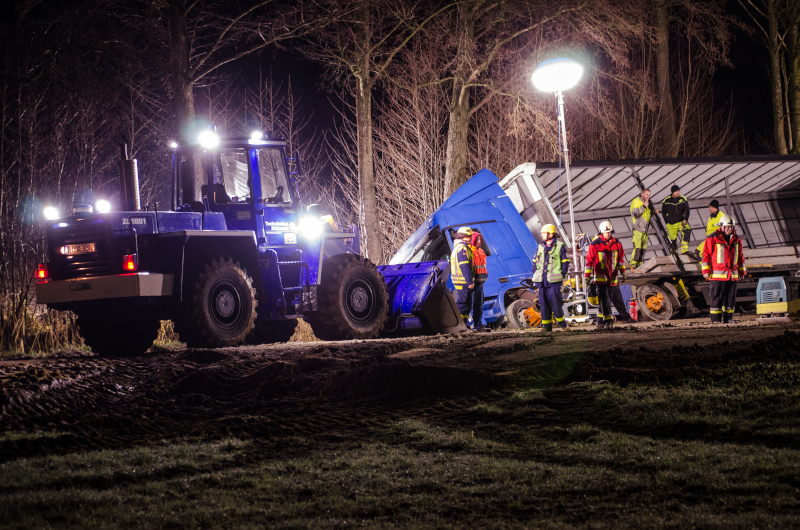 Da nach dem Eintreffen des Bergeunternehmens von einer längeren Bergezeit ausgegangen werden musste, unterstützte die Feuerwehr bei der Ausleuchtung der Einsatzstelle.