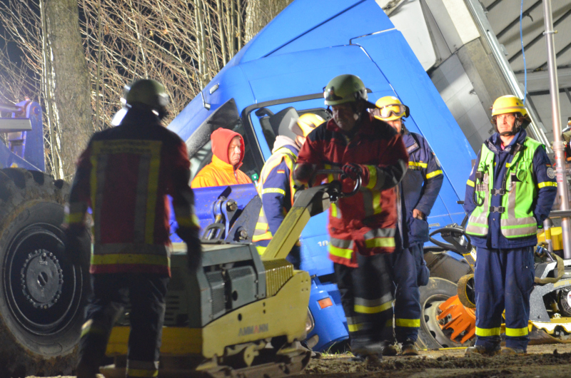 Zur Bergung des Fahrzeuges musste dies zuerst Entladen und durch das THW Kranstellflächen für die Bergekräne erstellt werden. Ebenso war aufgrund des Kraneinsatzes das Fällen von angrenzenden Bäumen mittels eines Drehleiterfahrzeugs erforderlich.