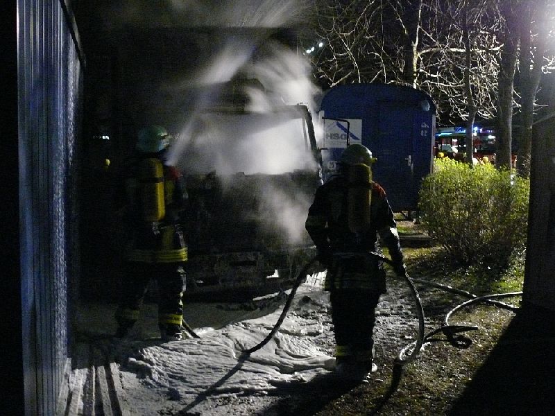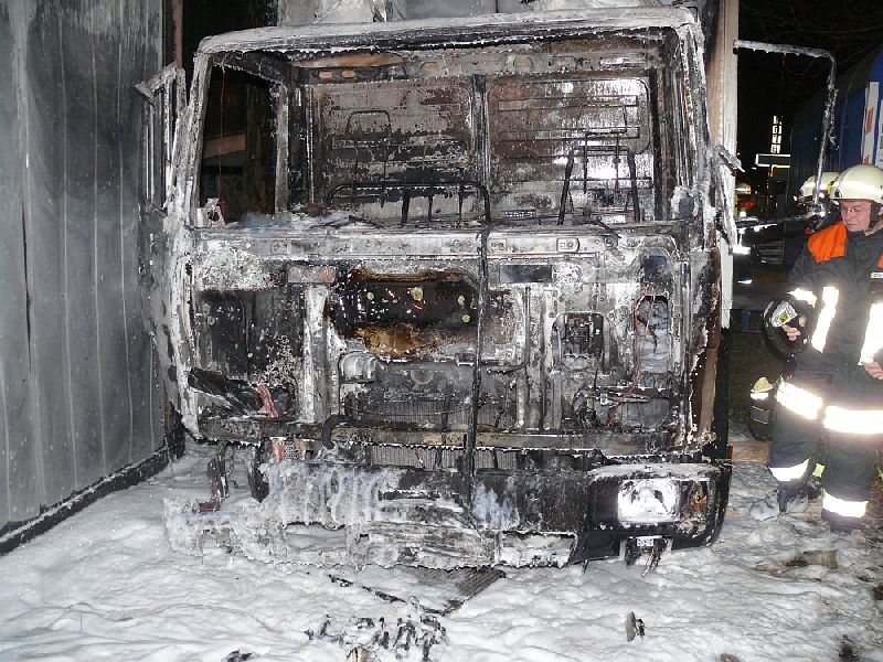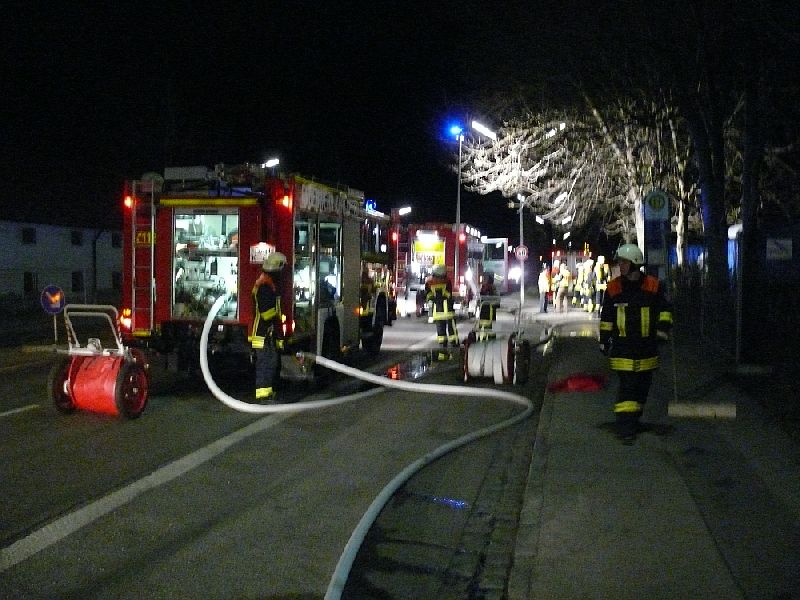 In den Abendstunden musste die Feuerwehr Karlsfeld zu einem LKW-Brand in die Münchner Str. ausrücken. Mehrere Passanten meldeten das brennende Fahrzeug per Handy, dessen Fahrerhaus beim Eintreffen des ersten Löschfahrzeuges bereit in voller Ausdehnung brannte. Zwei Einsatzkräfte begannen unter schwerem Atemschutz mittels Schnellangriff umgehend mit den Löscharbeiten. Zur Unterstützung vor Ort rückten noch drei weitere Fahrzeuge der karlsfelder Wehr nach. Bereits nach wenigen Minuten konnte das Feuer durch die Einsatzkräfte kontrolliert zum Ruhen gebracht werden. 23 Kameraden waren eine Stunde vor Ort mit den Arbeiten beschäftigt. Die eigentliche Ursache des Brandes ist bislang noch unklar, die Kripo ermittelt.