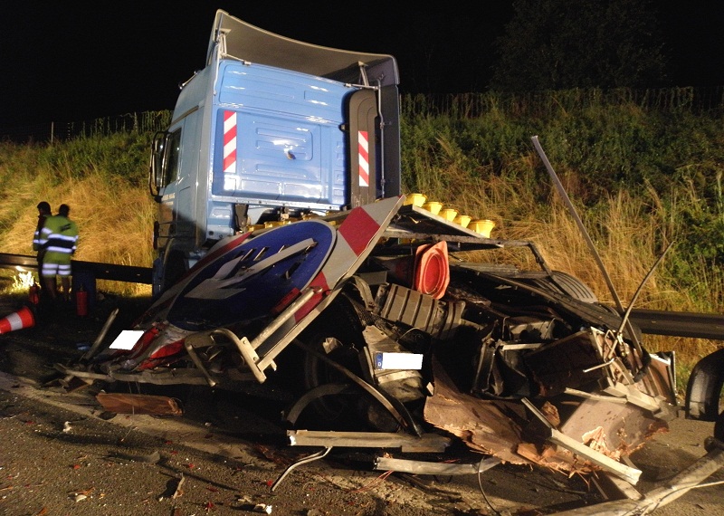 LKW-Fahrer übersieht Verkehrsleitanhänger