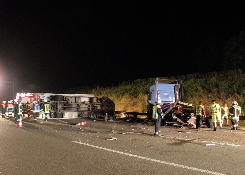 Während der Bergungs- und Aufräumungsarbeiten blieben zwei Fahrspuren gesperrt, die erst in den Morgenstunden wieder frei gegeben werden konnten.