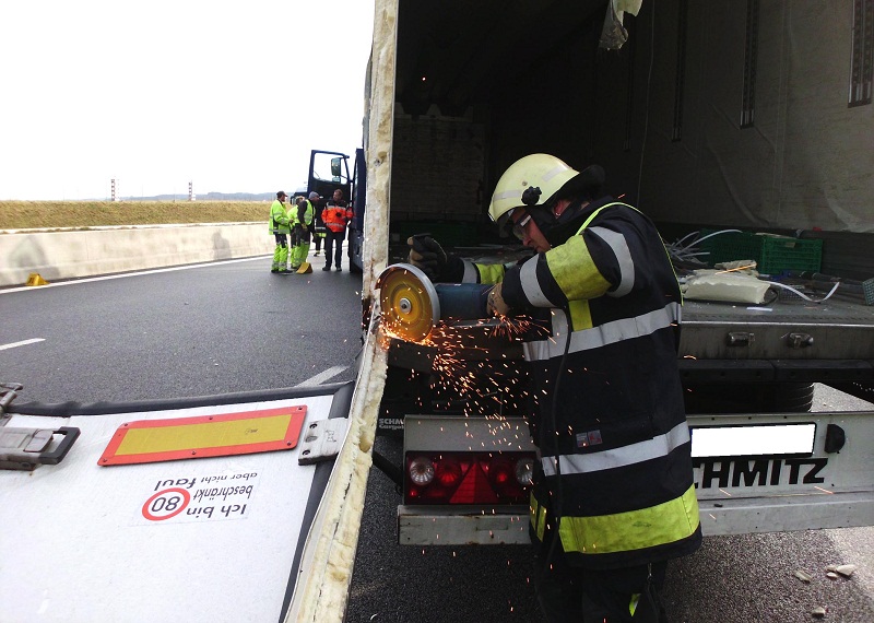 Die Feuerwehren Adelzhausen, Odelzhausen und Wiedenzhausen waren mit 28 Mann vor Ort, um die Unfallstelle abzusichern und die Ladung mit Muskelkraft umzuladen, bevor der Lastzug von einer Bergungsfirma wieder aufgestellt werden konnte.