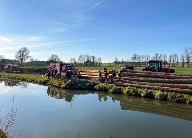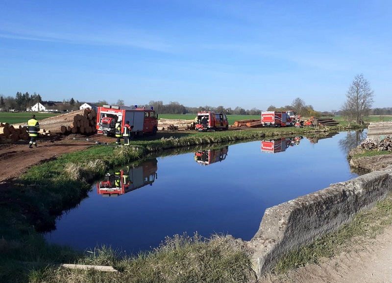 Zum Abschluss wurden die Wasserentnahme aus offenen Gewässern sowie die anschließende Wasserförderung geübt.