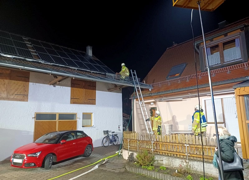 Nach der ersten Erkundung konnte Entwarnung gegeben werden, das Feuer stammte aus einer verirrten Silvesterrakete, die Teile einer Photovoltaikanlage auf dem Dach des Gebäudes entzündet hatten. Unter Vornahme eines Löschrohres wurde die Anlage von außen gekühlt und parallel dazu der Dachstuhl mit einer Wärmebildkamera auf mögliche Glutnester kontrolliert. Gegen 1.00 Uhr waren die Arbeiten beendet.