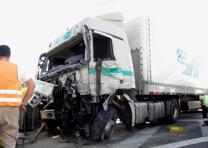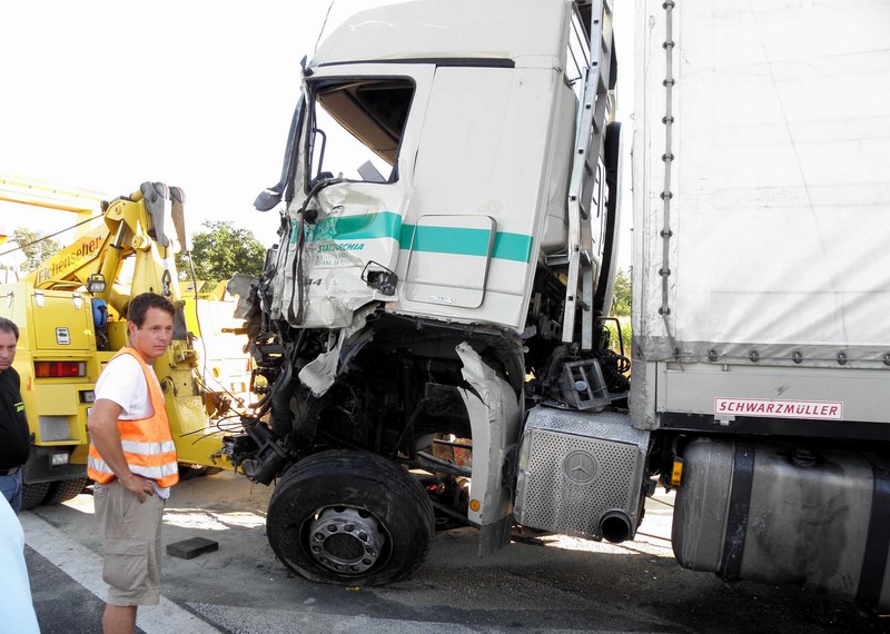 Glück im Unglück hatte ein ausländischer Brummifahrer am Dienstag Nachmittag auf der Autobahn zwischen den Anschlussstellen Sulzemoos und Dachau, nahe der Ausfahrt Dachau.Aus noch ungeklärter Ursache fuhr der Lkw-Lenker auf einen anderen Lkw auf; bei dem Aufprall wurde die Fahrerkabine abgerissen und kam auf der Fahrbahn zum Liegen, der Auflieger prallte gegen die Leitplanke, wobei diese erheblich beschädigt wurde.