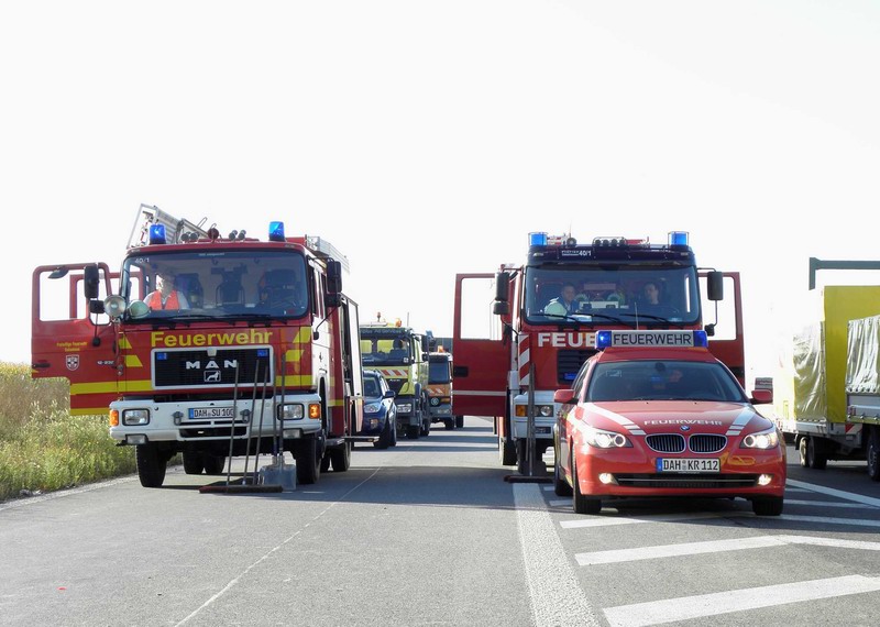 Da zunächst unklar war, ob der Fahrer in seiner Kabine eingeklemmt wurde, wurden neben Polizei, Notarzt und Rettungsdienst die Feuerwehren Dachau, Feldgeding, Odelzhausen, Sulzemoos und Wiedenzhausen zur Hilfeleistung alarmiert. Beim Eintreffen der ersten Rettungskräfte konnte jedoch schnell Entwarnung gegeben werden; der Brummilenker entstieg nahezu unverletzt dem Fahrzeugwrack, wurde jedoch vom Rettungsdienst vorsorglich in ein Krankenhaus gebracht.