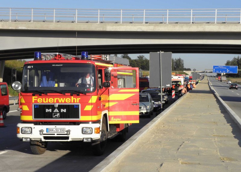 Die eingesetzten Feuerwehren übernahmen bei hochsommerlichen Temperaturen die Absicherung und Räumung der Unfallstelle; bis zum Abtransport der zwei Lkw´s durch Bergungsfirmen blieb die Ausfahrt Dachau, sowie eine Fahrspur bis in die frühen Abendstunden für den Verkehr gesperrt.