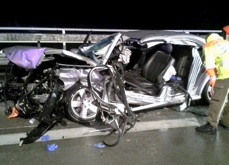 Mercedes-Lenker bei Verkehrsunfall auf der Autobahn im Fahrzeug eingeklemmt