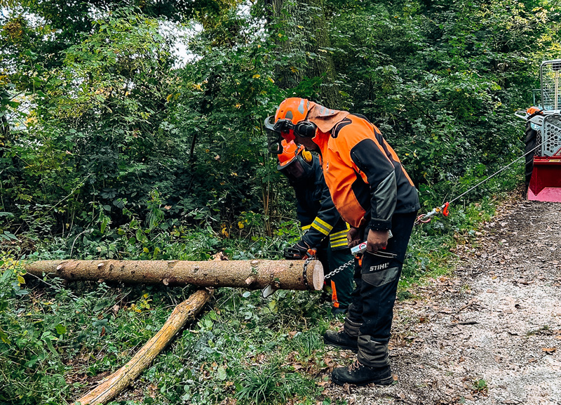 Im praktischen Teil, der in einem Waldstück nahe Unterweilbach stattfand, standen vor allem das sichere Arbeiten im Gelände und das richtige Schneiden von Holz unter Spannung im Mittelpunkt. Hier konnten die Feuerwehrkräfte das Gelernte direkt umsetzen und ihre Fertigkeiten im realistischen Einsatzumfeld vertiefen.