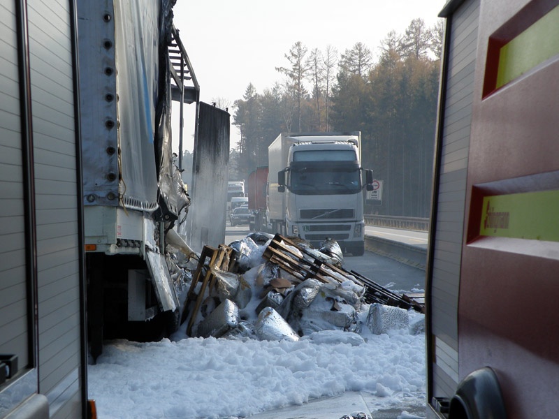 Schwierig gestaltete sich die Anfahrt der Einsatzkräfte, sowohl von oberbayerischer, als auch von schwäbischer Seite, da alle Fahrspuren hoffnungslos blockiert waren. Erst als von der Polizei die Gegenfahrbahn für die Anfahrt freigegeben wurde, konnten die Flammen unter Einsatz von schwerem Atemschutz mit zwei Schaumrohren rasch gelöscht werden.